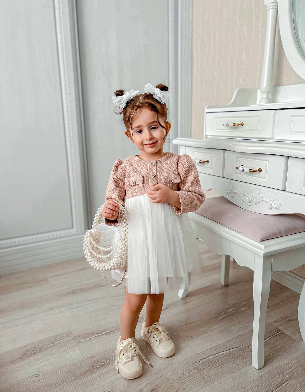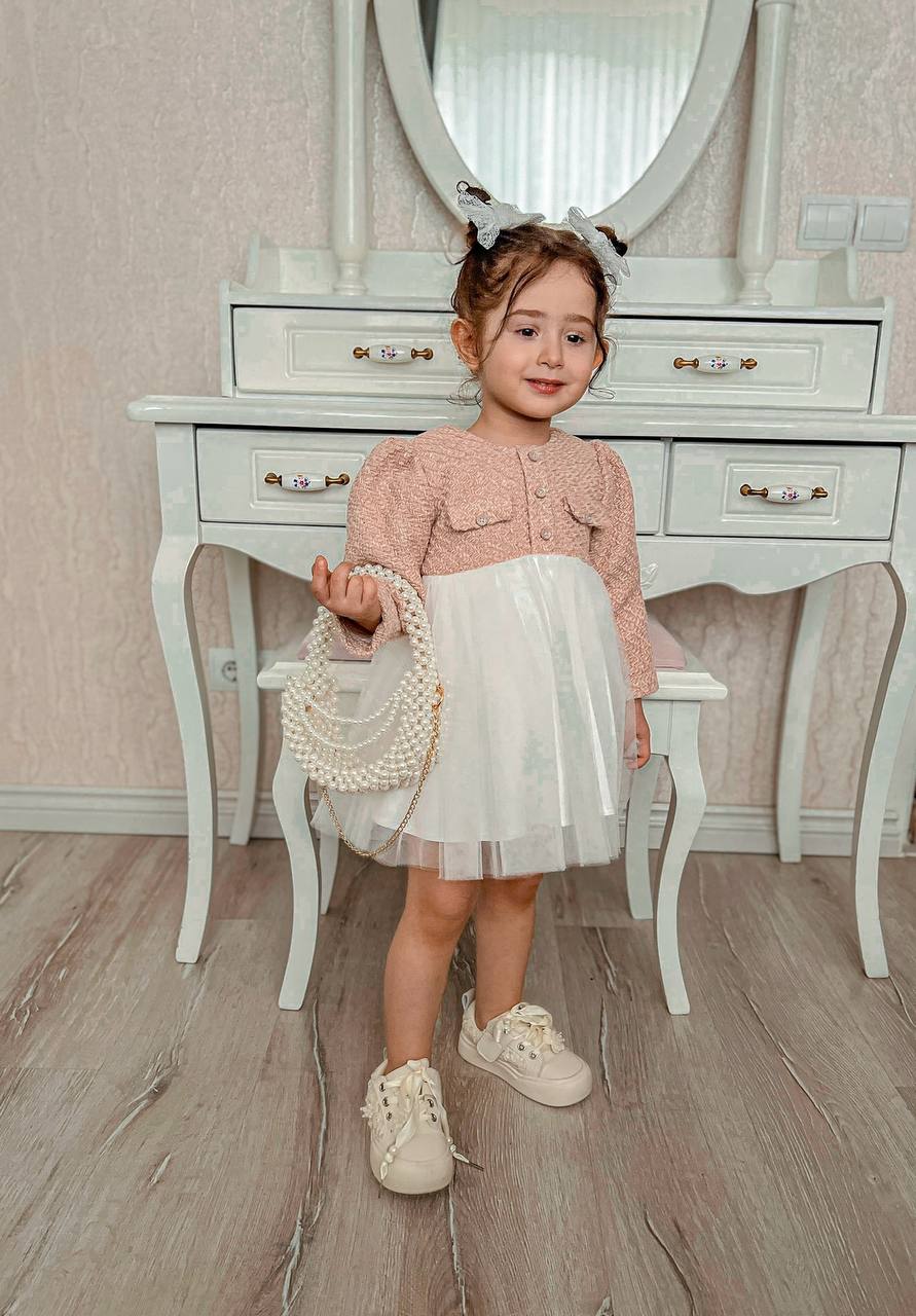 پیراهن شکوفه ی گیلاس ترکیب تور و ساتن و بالاتنه پشمیه